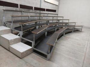 Gemakkelijk op te bouwen en na gebruik op te slaan, vraagt drie europallets plaatsen.